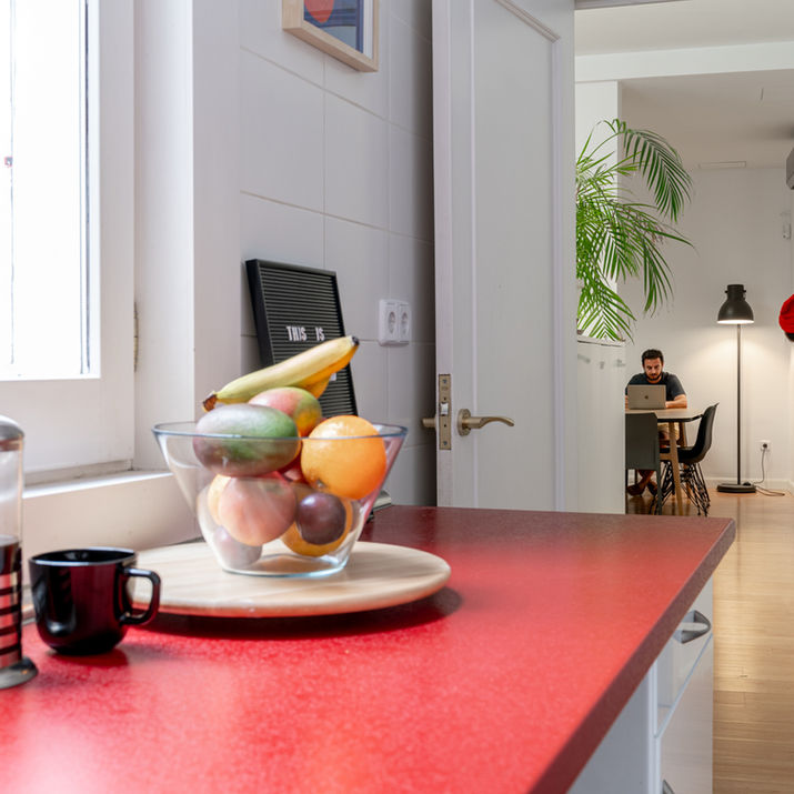 Tenemos un sofá y una mesa grande donde comemos en familia. Suele oler a café recién hecho y se oyen conversaciones sobre proyectos, montañas y viajes. (Y más)